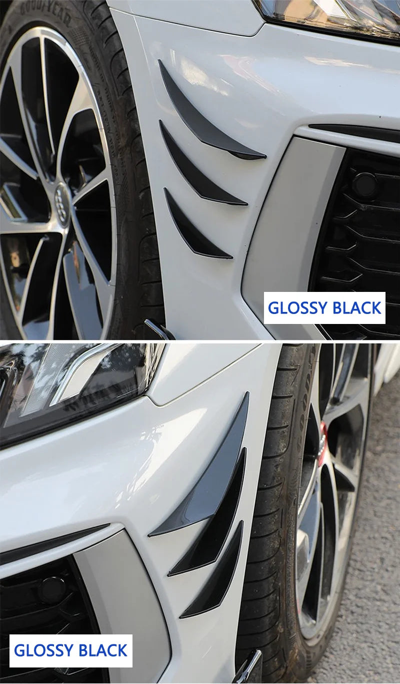 The 6-Piece Universal Front Bumper Canard Kit. Sleek carbon-fiber look, angled for aerodynamics, and built to protect as well as impress. These aren’t just trims—they’re the transformation from factory blandness to a bold, racing-inspired stance.