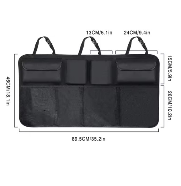 The Car Trunk Storage Bag (89.5 × 46 cm / 35.2 × 18.1 in) turns your trunk into a perfectly organized space. With smart compartments, durable materials, and a secure design, it keeps everything in place whether you’re shopping, traveling, or driving daily.