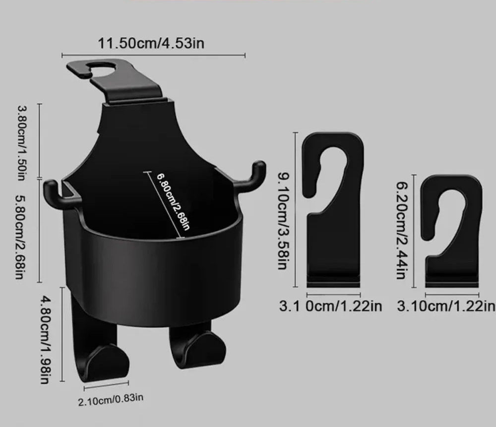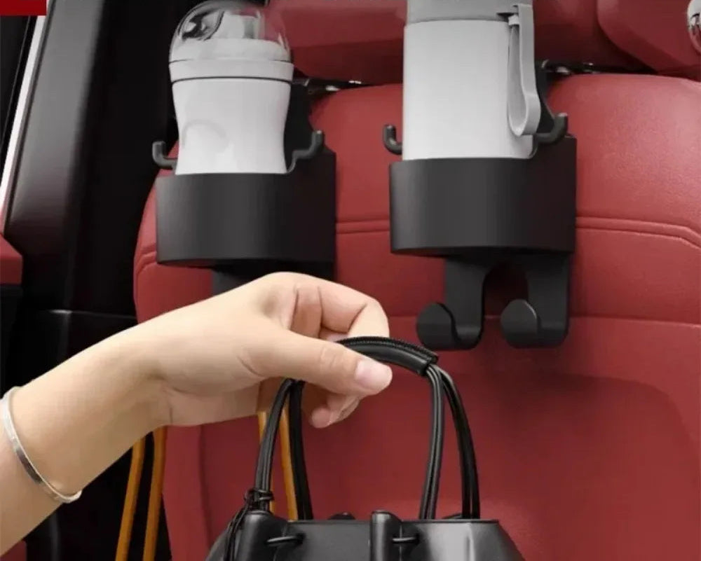 The Premium Car Cup & Storage Hook turns unused seat-back space into a functional, stylish storage solution.